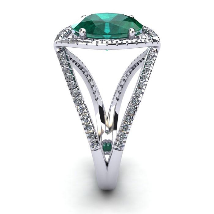 Retrograde Birthstones™ 1 1/2 Carat Oval Shape Emerald and Halo Diamond Ring In 14 Karat White Gold