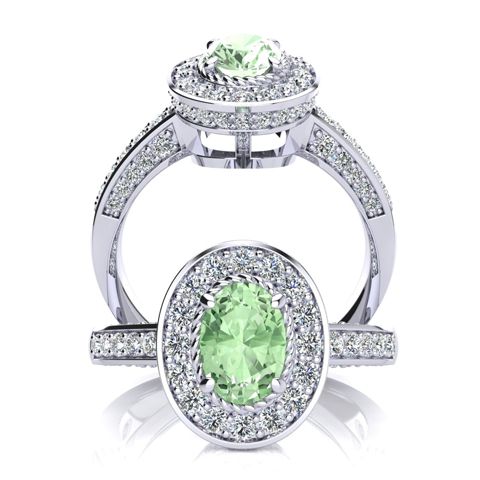 1 1/2 Carat Oval Shape Green Amethyst and Halo Diamond Ring In 14 Karat White Gold