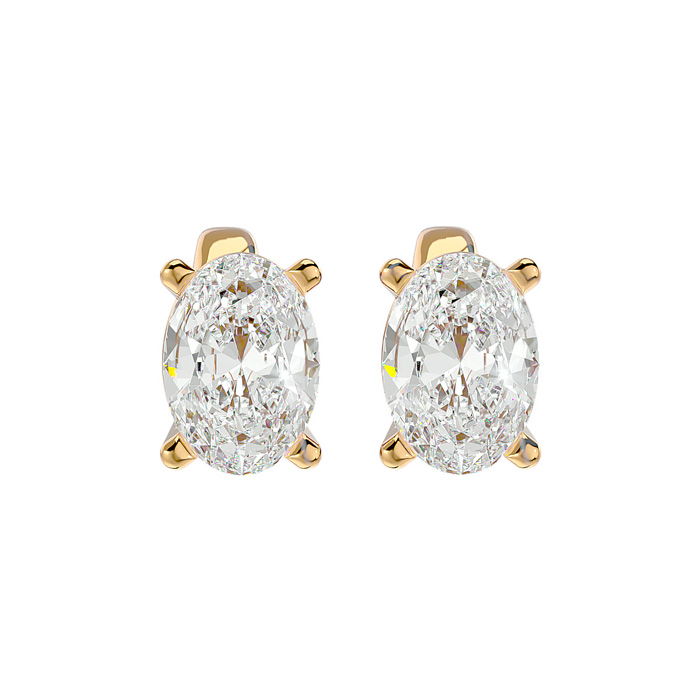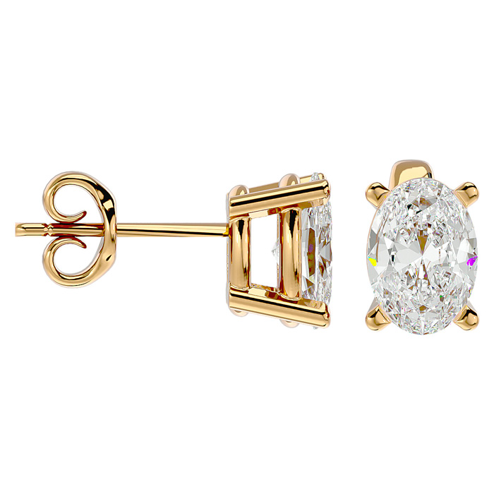 1 1/2 Carat Oval Shape Moissanite Stud Earrings In 14 Karat Yellow Gold