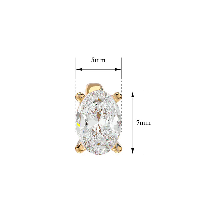 These classic moissanite stud earrings feature two 7x5mm oval shape moissanite gemstones in E-F color, VVS1-VVS2 clarity. Each moissanite weighs approximately 3/4 carat for a total weight of 1 1/2 carats. These earrings are in 14 karat yellow gold and have comfortable and secure post with friction backs.