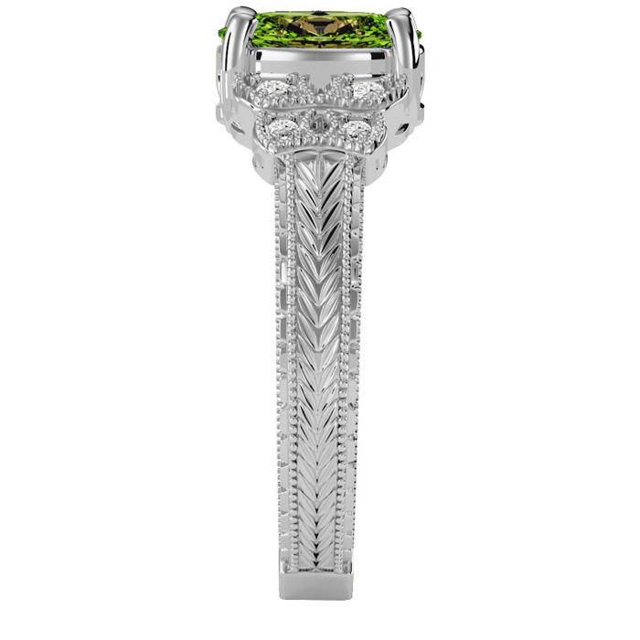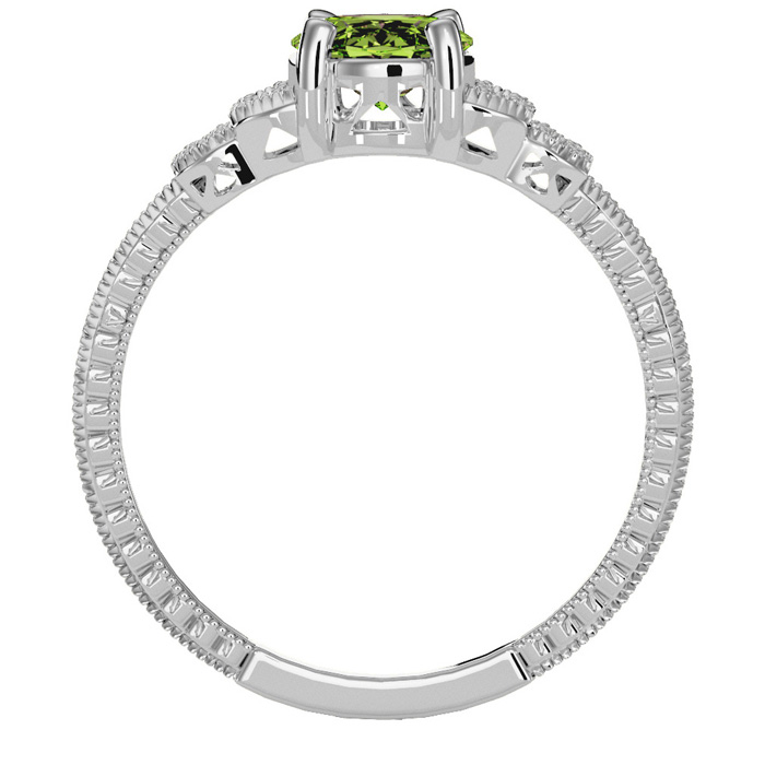 1 1/2 Carat Oval Shape Peridot and Diamond Ring In 10 Karat White Gold