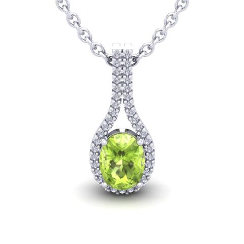 1 1/2 Carat Oval Shape Peridot and Halo Diamond Necklace In 14 Karat White Gold, 18 Inches