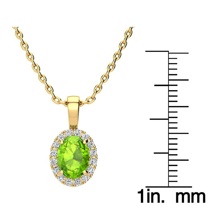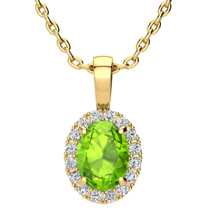 1 1/2 Carat Oval Shape Peridot and Halo Diamond Necklace In 14 Karat Yellow Gold With 18 Inch Chain