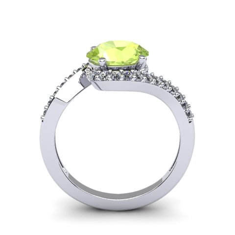 1 1/2 Carat Oval Shape Peridot and Halo Diamond Ring In 14 Karat White Gold