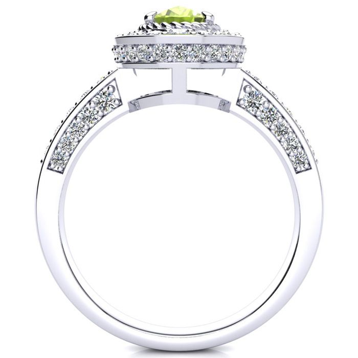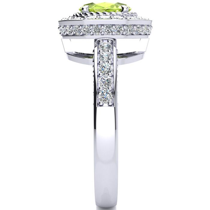 1 1/2 Carat Oval Shape Peridot and Halo Diamond Ring In 14 Karat White Gold