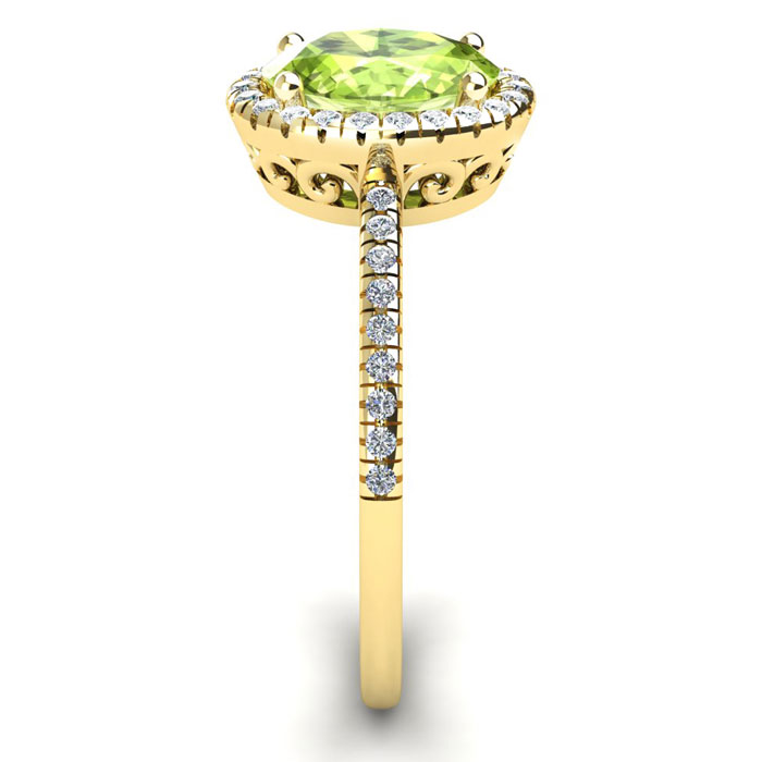 1 1/2 Carat Oval Shape Peridot and Halo Diamond Ring In 14 Karat Yellow Gold