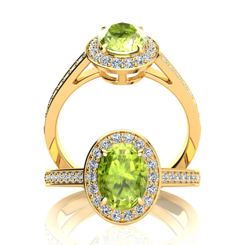 1 1/2 Carat Oval Shape Peridot and Halo Diamond Ring In 14 Karat Yellow Gold