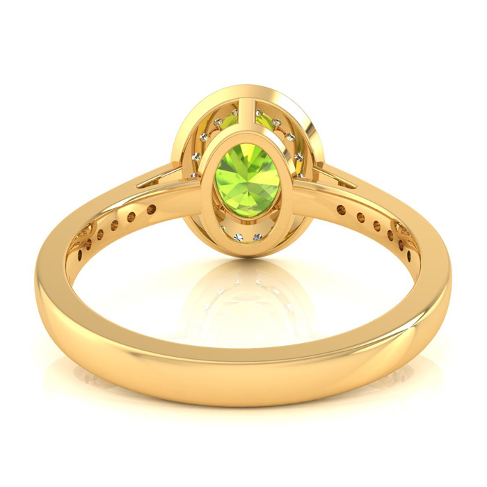 1 1/2 Carat Oval Shape Peridot and Halo Diamond Ring In 14 Karat Yellow Gold