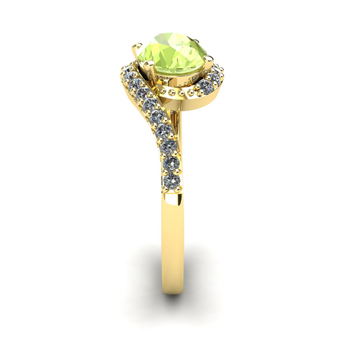 1 1/2 Carat Oval Shape Peridot and Halo Diamond Ring In 14 Karat Yellow Gold