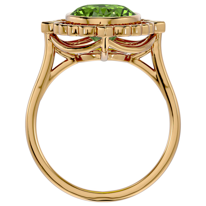Retrograde Birthstones™ 1 1/2 Carat Oval Shape Peridot and Halo Diamond Ring In 14 Karat Yellow Gold