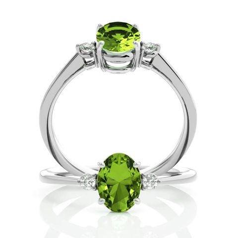 1 1/2 Carat Oval Shape Peridot and Two Diamond Ring In 14 Karat White Gold