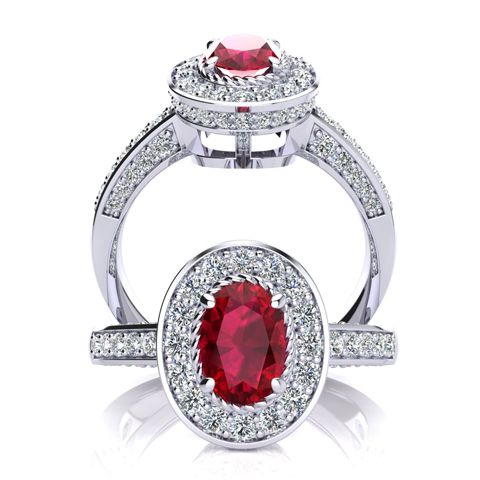 1 1/2 Carat Oval Shape Ruby and Halo Diamond Ring In 14 Karat White Gold