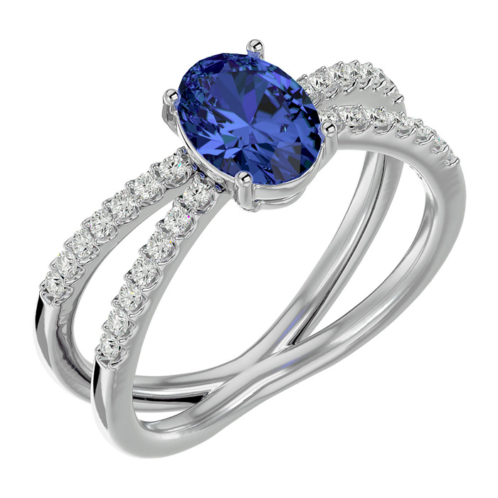 1 1/2 Carat Oval Shape Tanzanite and Diamond Ring In 14 Karat White Gold