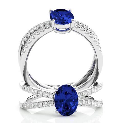 1 1/2 Carat Oval Shape Tanzanite and Diamond Ring In 14 Karat White Gold
