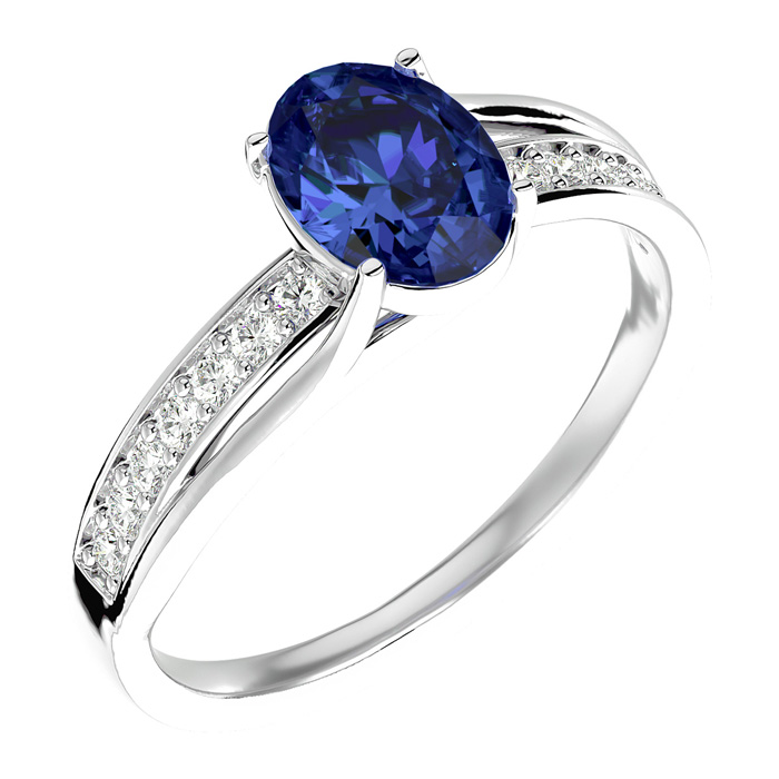 1 1/2 Carat Oval Shape Tanzanite and Diamond Ring In 14 Karat White Gold