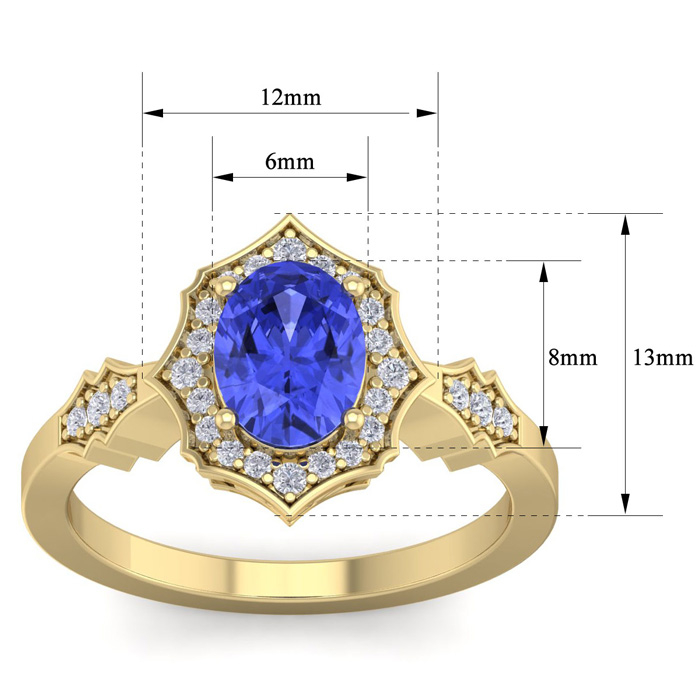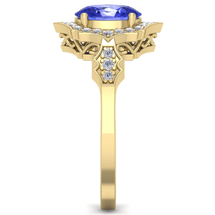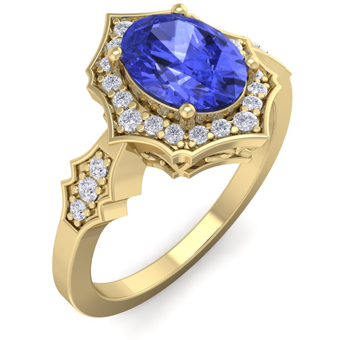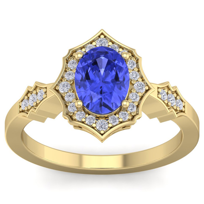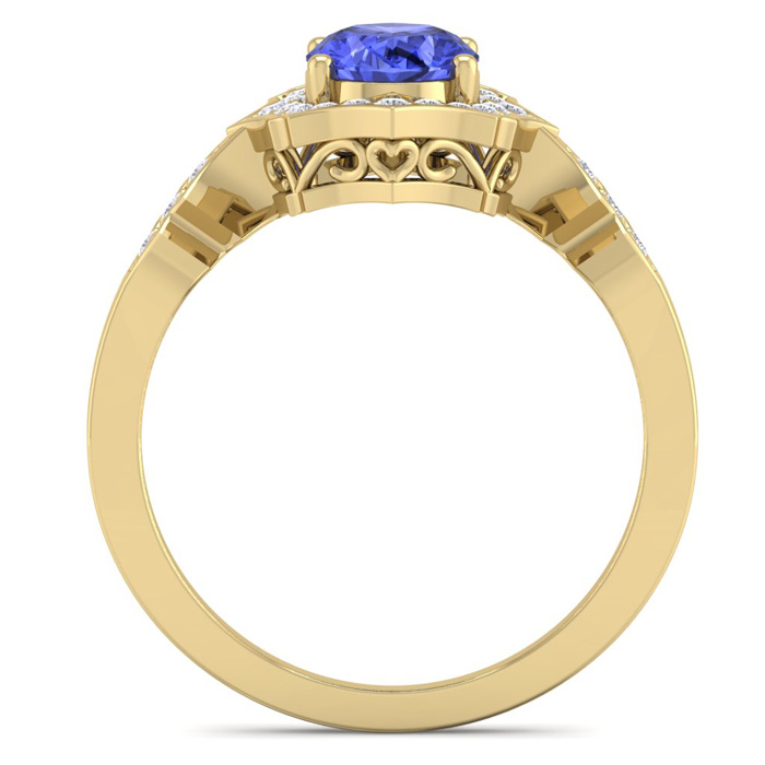 Retrograde Birthstones™ 1 1/2 Carat Oval Shape Tanzanite and Diamond Ring In 14 Karat Yellow Gold