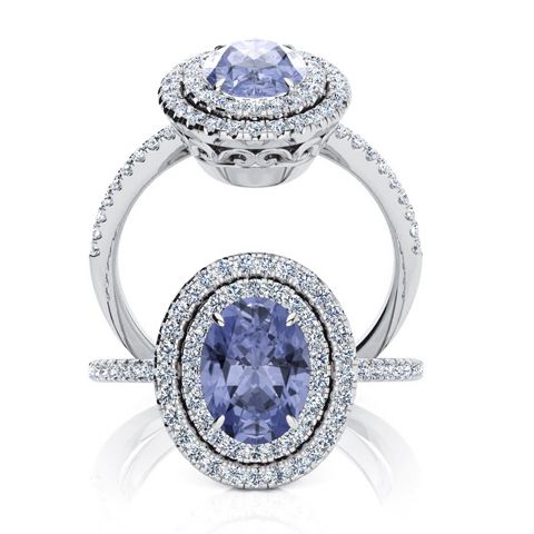 1 1/2 Carat Oval Shape Tanzanite and Double Halo Diamond Ring In 14 Karat White Gold