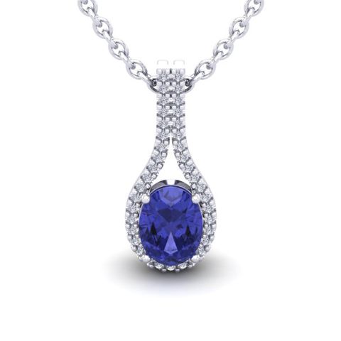 1 1/2 Carat Oval Shape Tanzanite and Halo Diamond Necklace In 14 Karat White Gold, 18 Inches