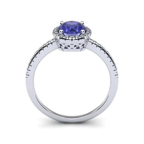 1 1/2 Carat Oval Shape Tanzanite and Halo Diamond Ring In 14 Karat White Gold