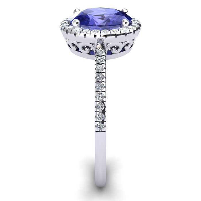 1 1/2 Carat Oval Shape Tanzanite and Halo Diamond Ring In 14 Karat White Gold