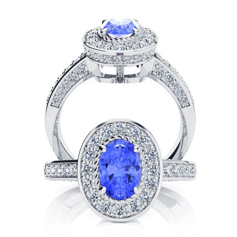 1 1/2 Carat Oval Shape Tanzanite and Halo Diamond Ring In 14 Karat White Gold