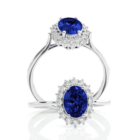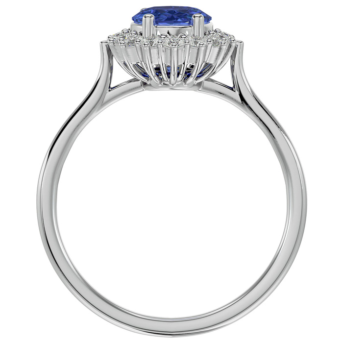 1 1/2 Carat Oval Shape Tanzanite and Halo Diamond Ring In 14 Karat White Gold