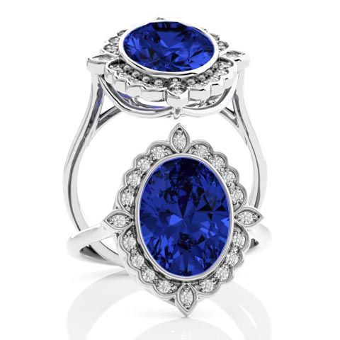 1 1/2 Carat Oval Shape Tanzanite and Halo Diamond Ring In 14 Karat White Gold