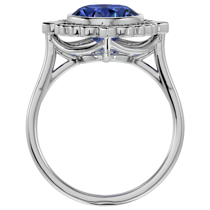 1 1/2 Carat Oval Shape Tanzanite and Halo Diamond Ring In 14 Karat White Gold