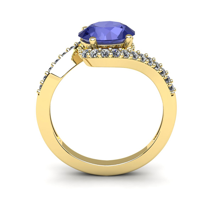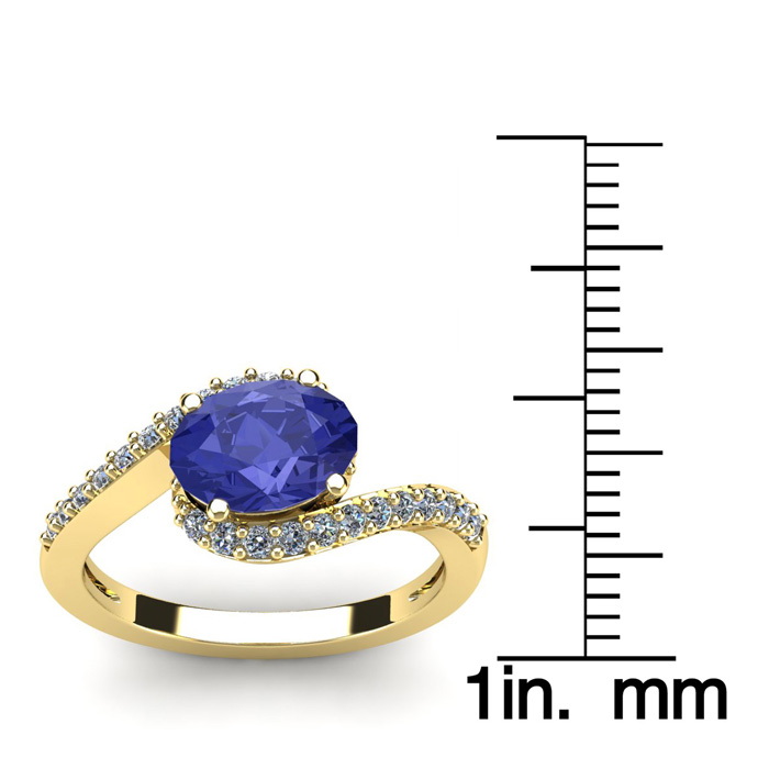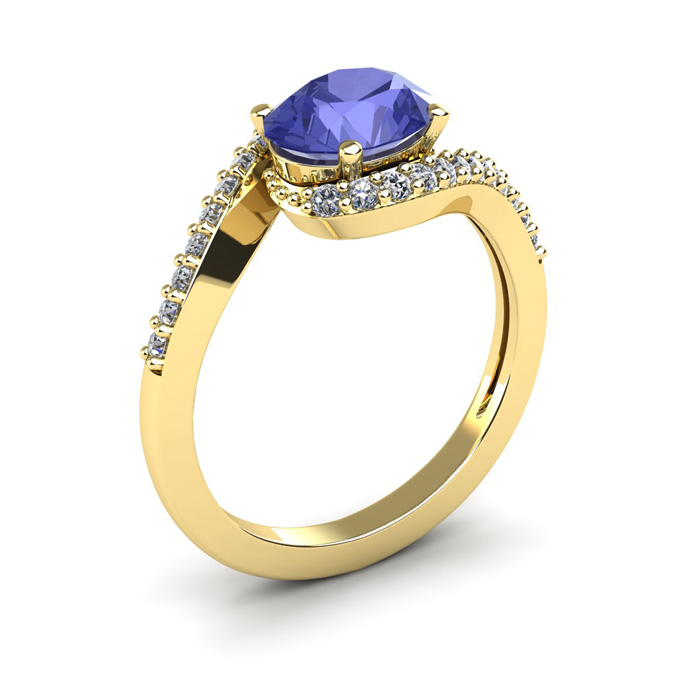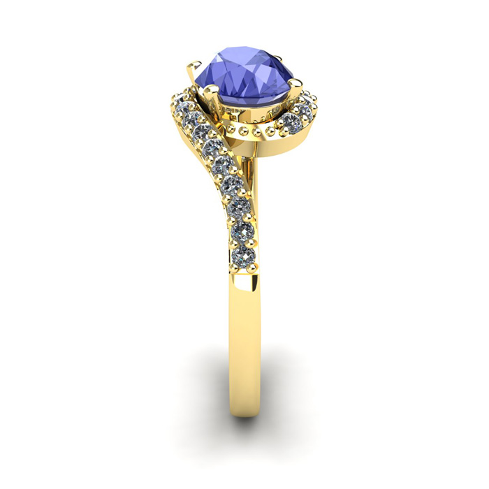 1 1/2 Carat Oval Shape Tanzanite and Halo Diamond Ring In 14 Karat Yellow Gold