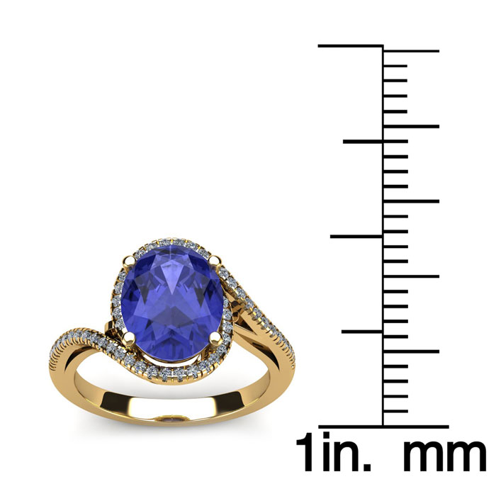 1 1/2 Carat Oval Shape Tanzanite and Halo Diamond Ring In 14 Karat Yellow Gold