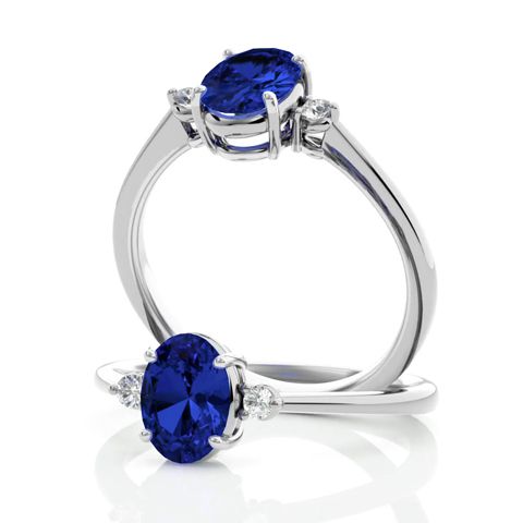 1 1/2 Carat Oval Shape Tanzanite and Two Diamond Ring In 14 Karat White Gold