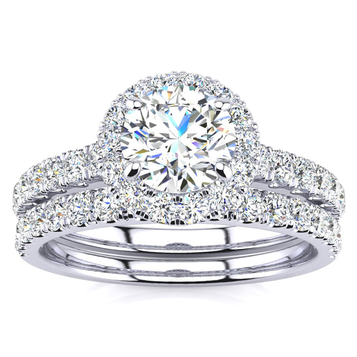 1 1/2 Carat Lab-Grown Pave Halo Diamond Bridal Set in 14k White Gold