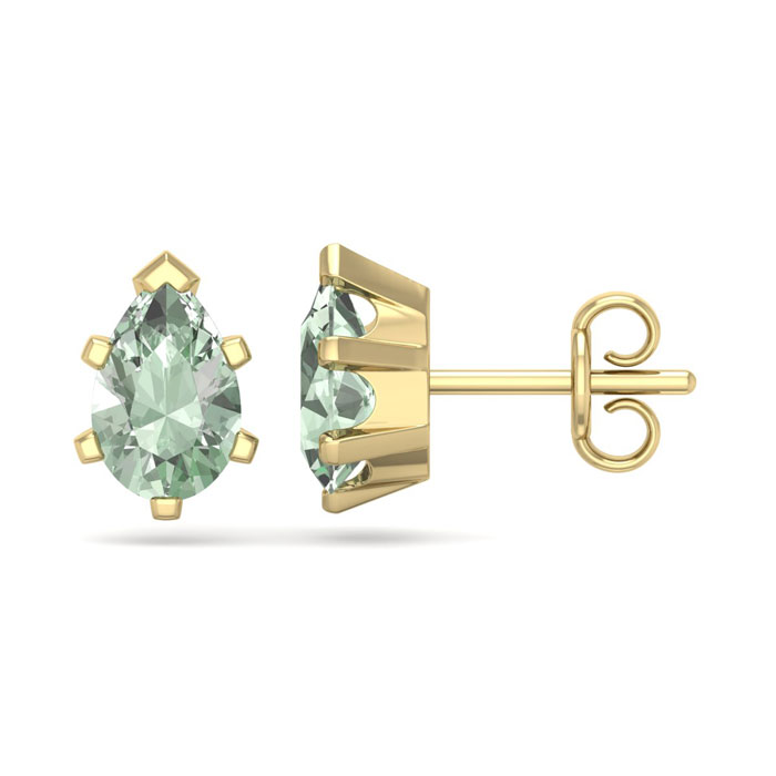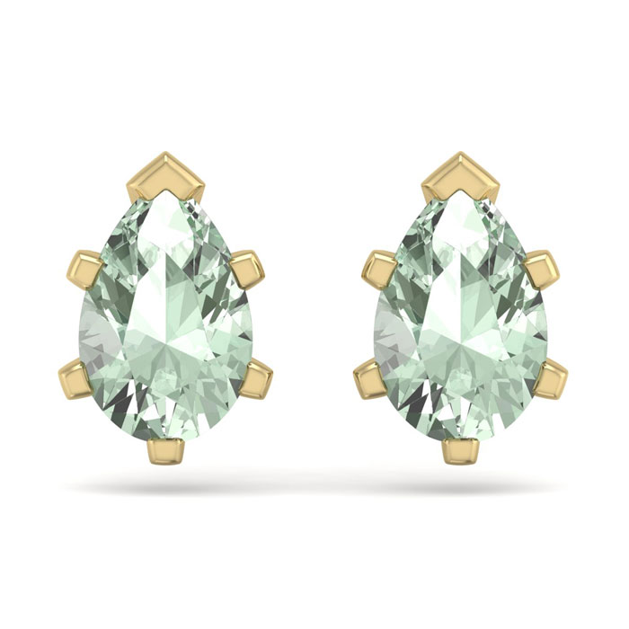 1 1/2 Carat Pear Shape Green Amethyst Stud Earrings In 14K Yellow Gold Over Sterling Silver