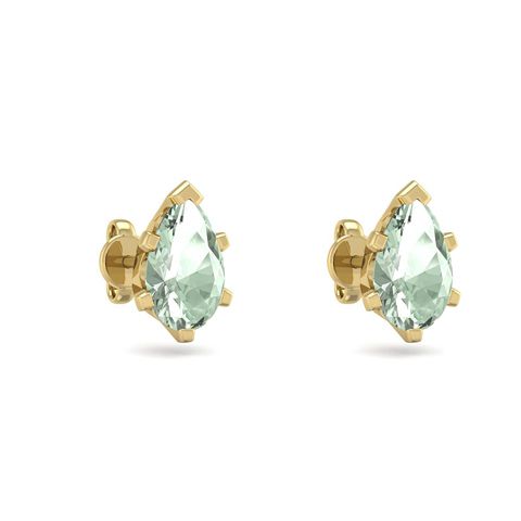 1 1/2 Carat Pear Shape Green Amethyst Stud Earrings In 14K Yellow Gold Over Sterling Silver