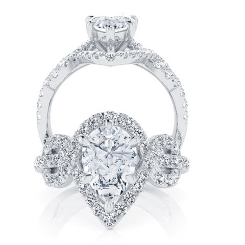 1 1/2 Carat Natural Pear Shape Halo Diamond Fancy Engagement Ring In 14K White Gold (H-I, SI2-I1)