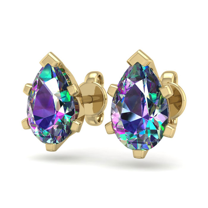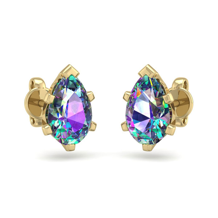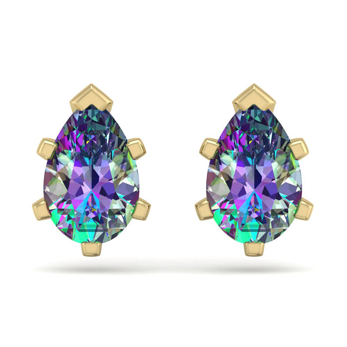 1 1/2 Carat Pear Shape Mystic Topaz Stud Earrings In 14K Yellow Gold Over Sterling Silver