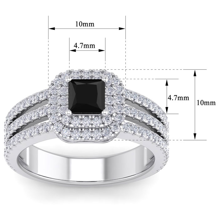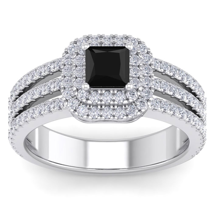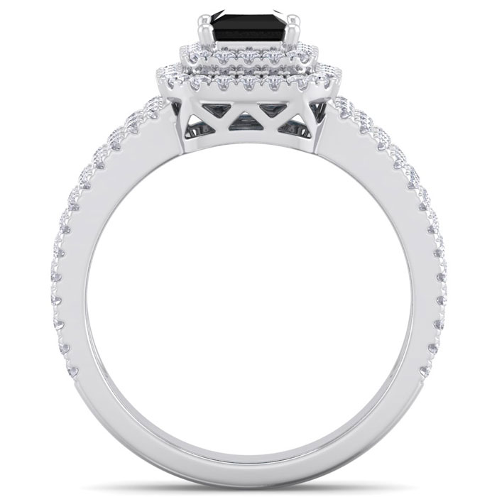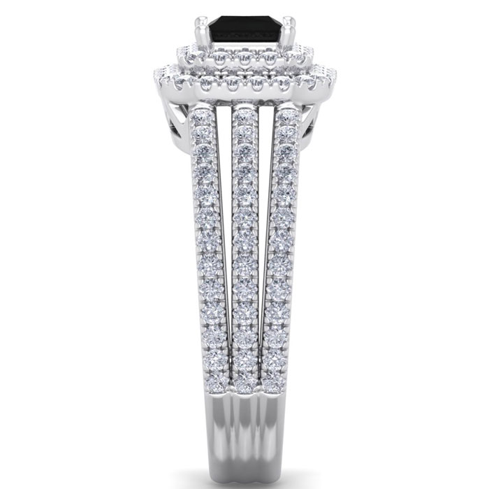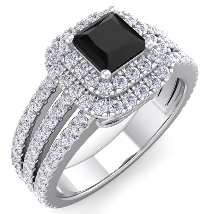 1 1/2 Carat Princess Shape Double Halo Black and White Diamond Engagement Ring In 14 Karat White Gold