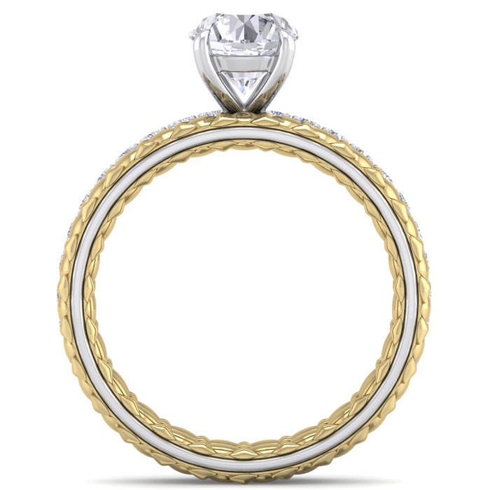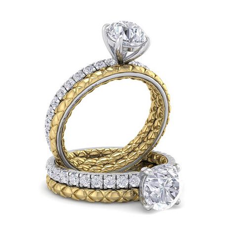 1 1/2 Carat Natural Round Shape Diamond Bridal Set In Quilted 14 Karat White and Yellow Gold