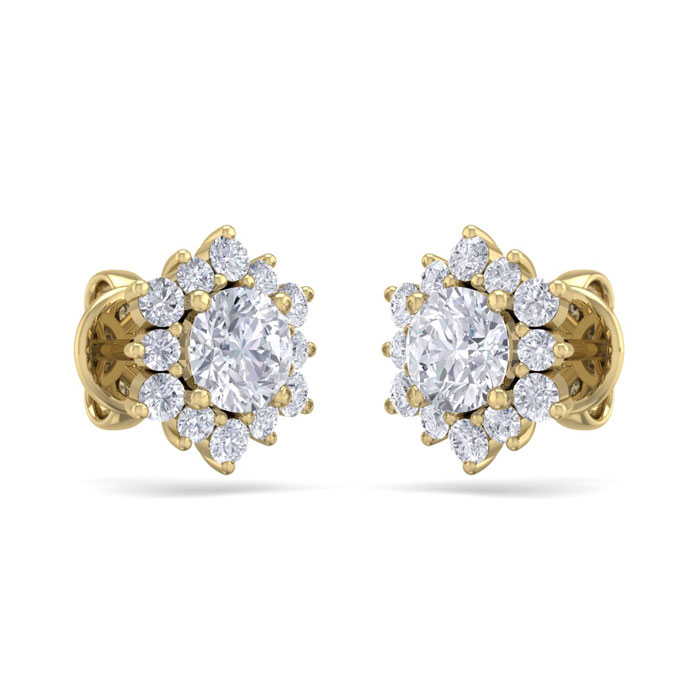 1 1/2 Carat Round Shape Flower Halo Moissanite Stud Earrings In 14 Karat Yellow Gold