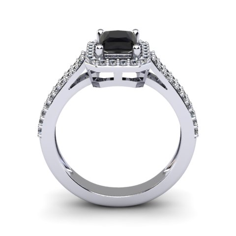 This stunning gemstone and diamond ring features one 7x5mm emerald cut sapphire gemstone at 1.05 carats. It is surrounded by 56 sparkling diamonds in a halo in I-J color, I1-I2 clarity at 0.42 carats. Total gem weight is 1.47 carats. This ring is crafted in 14 karat white gold.