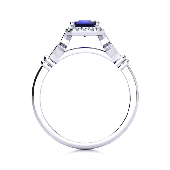Retrograde Birthstones™ 1 1/2 Carat Sapphire and Halo Diamond Vintage Ring In 14 Karat White Gold