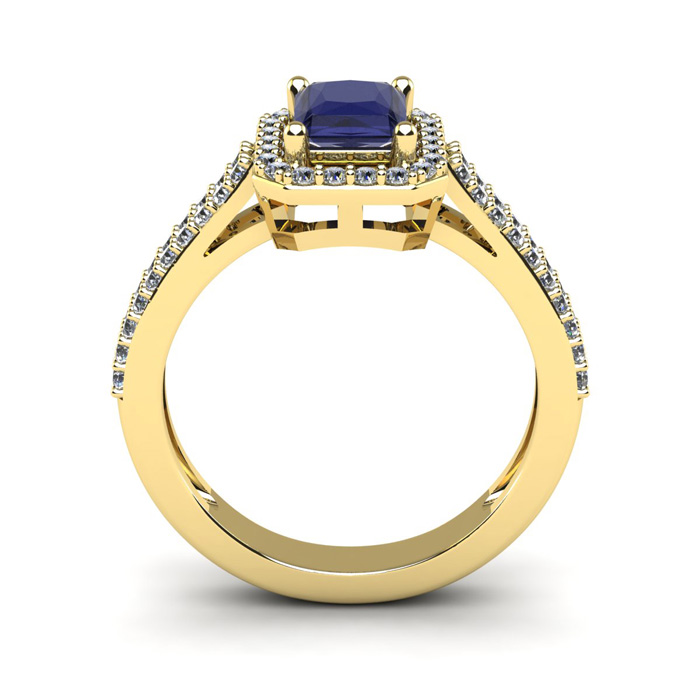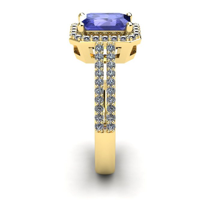 1 1/2 Carat Tanzanite and Halo Diamond Ring In 14 Karat Yellow Gold