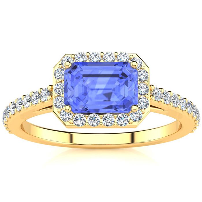 1 1/2 Carat Tanzanite and Halo Diamond Ring In 14 Karat Yellow Gold