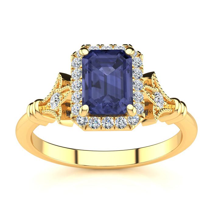 Retrograde Birthstones™ 1 1/2 Carat Tanzanite and Halo Diamond Vintage Ring In 14 Karat Yellow Gold