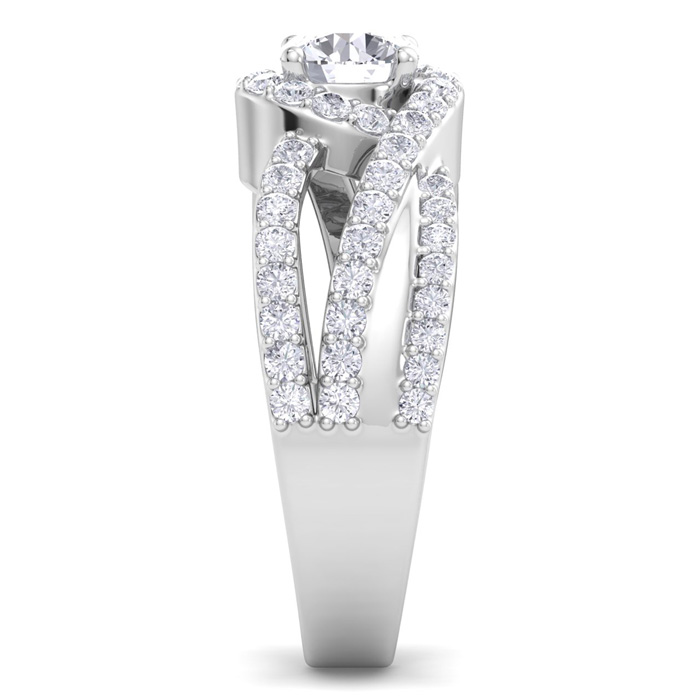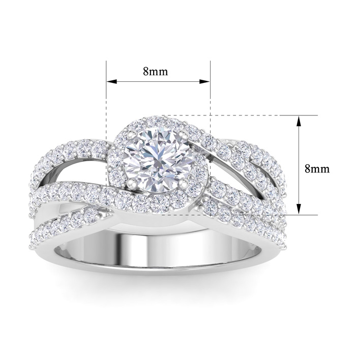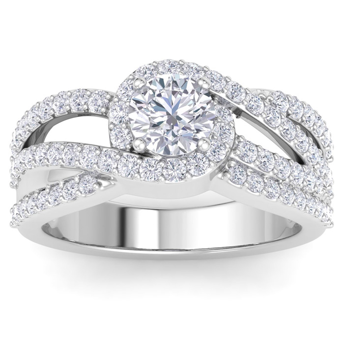 1 1/2 Carat Natural Triple Band Halo Diamond Engagement Ring in 14k White Gold