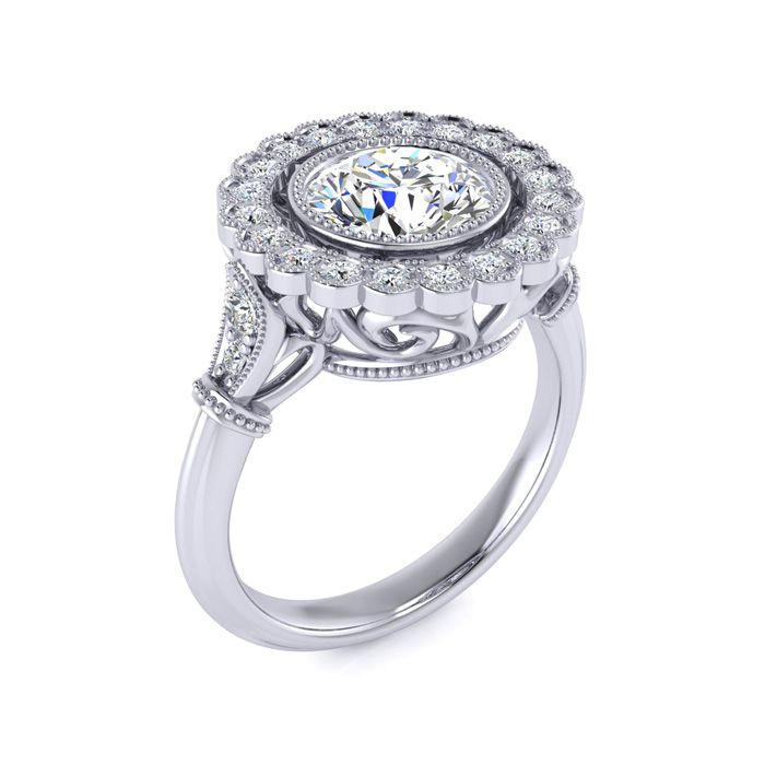 1 1/2 Carat Natural Vintage Diamond Engagement Ring In 14 Karat White Gold