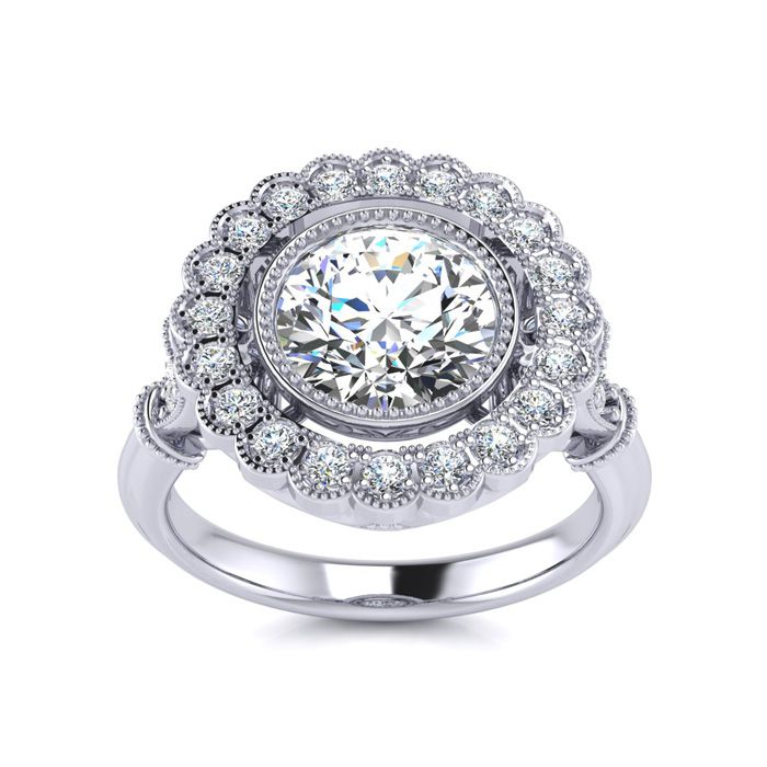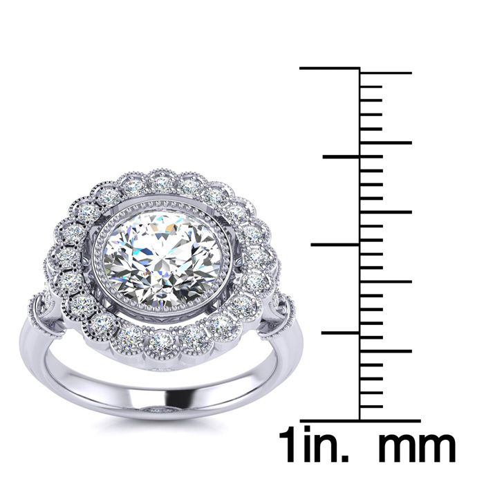 1 1/2 Carat Natural Vintage Diamond Engagement Ring In 14 Karat White Gold