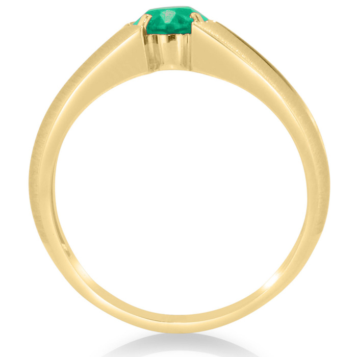 Beautiful oval cut created emerald and diamond men's gemstone ring set in 14k yellow gold. The oval cut created emerald is 1.50 carats. Total diamond weight is .01 carats, diamond color is I-J, diamond clarity is I2. Total gem weight is 1.51 carats. Available in ring sizes 8-12.5.