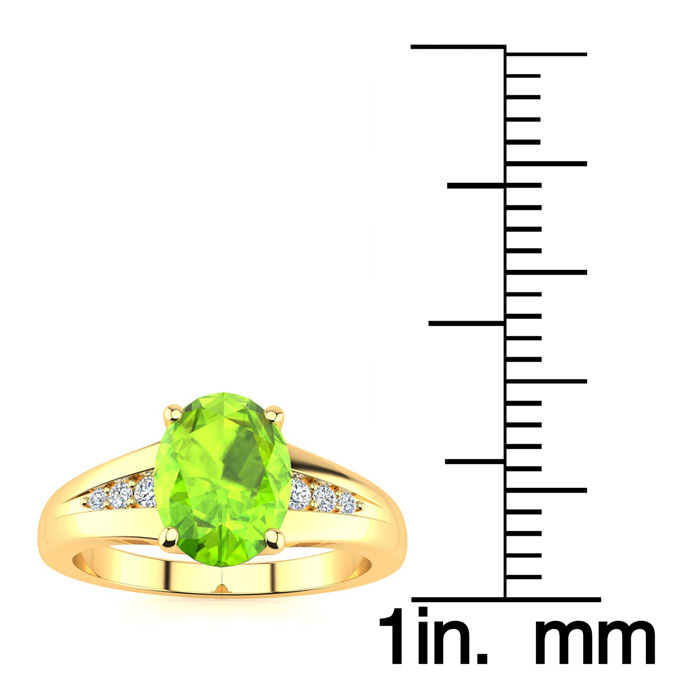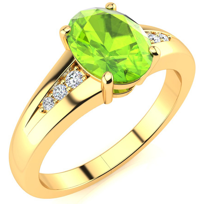 1 1/2ct Oval Shape Peridot and Diamond Ring in 10k Yellow Gold