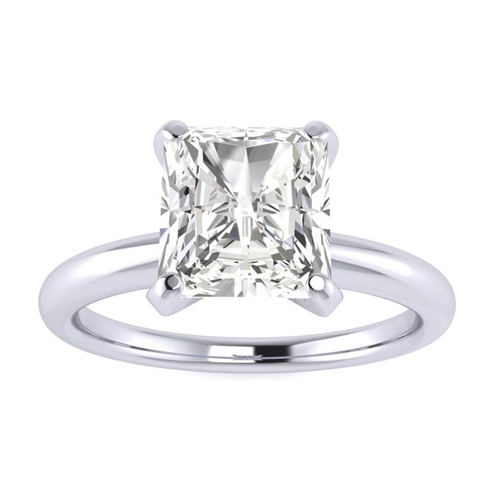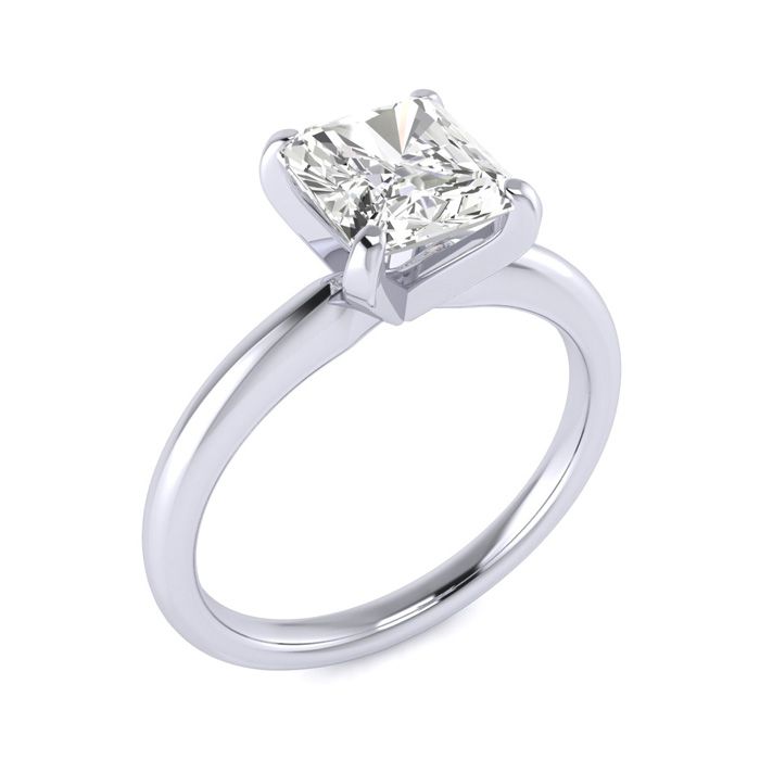 1 1/2ct Radiant Cut Diamond Solitaire Engagement Ring In 14K White Gold